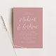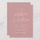 Invitations minimalistes de mariage avec vos noms affichés dans un script blanc simple avec vos détails mariages montrés ci-dessous sur un arrière - plan rose poussiéreux. L'invitation revient à un arrière - plan rose solide et poussiéreux avec espace pour le texte et les photos.