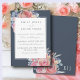 Ce modèle d'invitation à un mariage élégant allie charme rustique et sophistication intemporelle. Avec ses pivoines aquarelles peintes à la main et ses roses aux tons pastel doux, complétés par l'eucalyptus vert sauge et la délicate lavande violette, l'agencement floral crée une atmosphère romantique et organique. Placé contre un arrière - plan bleu profond frappant, le design est magnifiquement contrasté par une calligraphie élégante sur un panneau blanc immaculé pour mettre en évidence vos détails mariages. Parfait pour les mariages de jardin, de boho ou de thème classique, ce modèle entièrement personnalisable vous permet d'ajouter votre touche personnelle avec facilité.