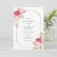 Cette élégante invitation de mariage présente une belle aquarelle rouge et rose cadre rose. Le dos de l'invitation est un blanc simple. (Il fait partie de la collection Red & Pink Roses.)