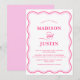 Cette Faire-part de mariage Wavy Retro Pink présente un mélange ludique de courbes dessinées à la main et de griffes, créant une ambiance rétro vibrante. Avec sa palette de couleurs rose et rouge, sa calligraphie contemporaine et son design ondulé, c'est le parfait mélange de nostalgie et d'élégance moderne. Idéal pour les couples à la recherche d'une invitation unique et élégante, ce faire-part de mariage rétro ajoute une touche ludique et artistique à toute célébration mariage.