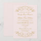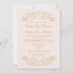 Une invitation de mariage portrait romantique avec des fioritures de rouleau ornemental or sur un fond rose pâle doux. Le filigrane métallique chaud contre le rose délicat crée un look féminin et élégant avec une calligraphie classique et des détails de date structurés. Tout le texte est entièrement personnalisable.