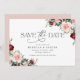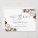 Cette carte Save the Date, élégante et personnalisable, présente des fleurs d'aquarelle bordeaux et rougies avec des feuilles verdoyants jumelés à un serif élégant et délicat sans police en noir, avec un monogramme sur le dos. Éléments correspondants disponibles.