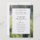 Faire-part de mariage avec poteau de clôture, fil barbelé, herbe verte et chemin.