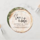 Apportez l'élégance d'inspiration nature à votre papeterie mariage avec cette tranche ronde en bois rustique enregistrer la carte de date. Conçue avec des textures de bois réalistes et une calligraphie chic et moderne, cette invitation est parfaite pour les couples qui planifient une grange, une forêt ou une mariage à thème rustique. Le format circulaire ajoute une touche unique et mémorable que les clients apprécieront. Avec des noms et des dates personnalisables, cela permet d'économiser le charme rustique et le design sophistiqué. Parfait pour les fêtes de pays, les mariages extérieurs ou les thèmes boho-chic, c’est une façon élégante de s’assurer que les proches marquent leur calendrier.