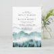 Invitation de mariage élégante et rustique avec une aquarelle de montagne avec des arbres et les initiales des mariés à l'arrière.