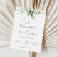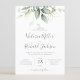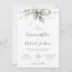 Belle invitation de mariage avec eucalyptus aquarelle et feuilles dorées.