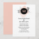 Faire-part de mariage minimaliste, en blanc avec une touche d'aquarelle de pêche rousse, en haut, avec une décoration florale noire simple. Une zone de texte sur disque noir contient les initiales de la mariée et du marié en pêche. Le dos est fait dans une pêche rousse solide. Personnalisez le texte personnalisé pour votre journée spéciale.