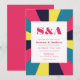 Art rétro coloré abstrait super personnalisé faire-part de mariage. Palette de couleur bleu rose jaune. Cette carte est facilement modifiable. Si vous avez besoin d'aide pour la personnalisation de ce produit ou si vous avez besoin de plus de produits correspondants pour cette collection, envoyez-moi un message aimable via Zazzle.