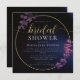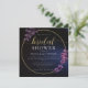 Les roses, les orchidées et les feuilles d'eucalyptus, dessinées à la main au crayon de couleur et superposées numériquement avec du violet, font de cette invitation de bapteme de mariage une création moderne, sophistiquée, élégante et chic. Le fond noir et bleu foncé avec des touches de violet et de lumières illumine le ciel de minuit. La calligraphie élégante, de la teinte de l'or, rend cette invitation noire et violette encore plus élégante.