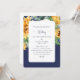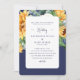 Elégant faire-part de mariage de tournesol aquarelle. Bleu Marine. Parents Listés. Beau. Toscane. Texte de la marine. Dos blanc. Les angles arrondis.