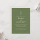 Un faire-part de mariage tout-en-un vert olive simple et élégant, avec des lettres simples et de script, et des informations d'invitation de mariage et de détails de mariage sur l'avant et l'arrière pour vous permettre de customiser avec votre propre hébergement, réception, détails rsvp et plus encore.
