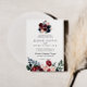Ce faire-part de mariage traditionnel à fleurs rose bordeaux est parfait pour un mariage rustique. Le design se compose de pivoines roses, rousses, navales, bleues et bordeaux, de roses au feuillage vert soigneusement assemblés en bouquets élégants.