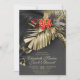 Invitations de mariage tropical foncé avec des feuilles noirs sur un arrière - plan foncé avec des accents exotiques de fleurs de jasmin antillais.