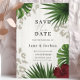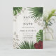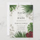 Annoncez votre grand jour avec cette élégante carte Save the Date tropicale. Avec des feuilles de palmier et de monstera luxuriantes et des accents floraux doux, ce design est parfait pour un mariage à destination ou un thème botanique moderne. Personnalisez facilement avec vos noms, date et lieu pour le rendre vraiment vôtre.