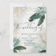 Design de feuilles tropicales, avec l'or moderne et vert tropical un cadre feuilleté, des lumières à cordes et personnalisées avec police verte.Ce modèle peut être facilement customisé en cliquant sur le bouton "customiser" pour changer la police et la taille du texte.