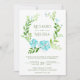Invitation vos invités avec cette élégante invitation de mariage avec une belle couronne fleurie sur un arrière - plan blanc. Ajoutez simplement les détails de votre événement sur ce modèle facile à utiliser pour en faire une invitation unique. Retournez la carte pour révéler un joli motif de points verts et blancs au dos de la carte.