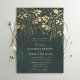 Invitation Mariage vert de feuillage doré en forêt enchantée