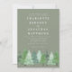 Bois Pine Forêt Sage Vert Faire-part de mariage Aquarelle Fir Trees & Moderne et élégante typographie Célébrez votre journée spéciale avec la beauté intemporelle de la nature. Cette Invitation de Mariage d'hiver présente une forêt de pins sylvestres sereines peinte en aquarelle délicate, dressée contre un arrière - plan vert sage élégant. Les sapins aquarelés peints à la main dans des verts doux et des bleus glacés capturent la magie tranquille d'un paysage enneigé, créant un design à la fois apaisant et sophistiqué. Parfait pour les mariages rustiques, les mariages boisés ou les cérémonies d'hiver douillettes, cette invitation allie typographie moderne et charme naturel. Dessinée par l'artiste Catherine Sweetman, cette oeuvre d'art originale allie élégance et fantaisie, en faisant un souvenir unique pour vos invités. La personnalisation est facile de modifier les noms, les dates, les lieux et d'autres détails directement dans le modèle pour créer un faire-part de mariage qui reflète vraiment votre histoire d'amour. Caractéristiques principales Aquarelle peinte à la main design sapin bois sur bois vert sauge minimaliste arrière - plan Élégante typographie moderne pour un look chic mais intemporel OEuvre originale de l'artiste Catherine Sweetman Entièrement personnalisable modèle personnalisable en quelques minutes Idéal pour les mariages d'hiver, les mariages rustiques, les thèmes boisés Un équilibre parfait du charme naturel et de l'élégance moderne Bienvenue à vos invités avec la beauté paisible d'hiver une invitation qui donne le ton pour une fête inoubliable.