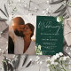 Cet élégant faire-part de mariage vert émeraude de verdure fleurie peut être personnalisé avec votre photo spéciale et des informations en typographie chic. Conçu par Thisisnotme©