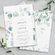 Cette belle faire-part de mariage élégante présente une aquarelle claire et aérée avec des éléments de verdure eucalyptus en cascade dans un style insouciant. Il dégage une esthétique fraîche et élégante, parfaite pour les mariages formels ou décontractés. La verdure de l'eucalyptus encadre le texte classique simple dans un style à la fois sophistiqué et naturel. La palette de couleurs douces du vert et du bleu-vert est intemporelle et fonctionne bien pour les mariages à n'importe quelle saison de l'année. Personnalisez l'exemple de texte affiché dans le modèle de conception avec les détails de votre mariage.