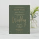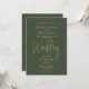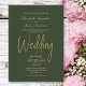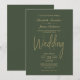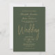Un élégant faire-part de mariage vert minimaliste avec du texte doré.
