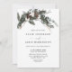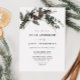 Célébrez votre mariage avec style grâce à cette invitation de mariage rustique minimaliste hivernale, mettant en vedette un pin aquarelle et une brindille d'eucalyptus avec des fleurs de coton et une calligraphie manuscrite élégante.