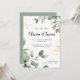Apportez l'élégance naturelle à votre faire-part mariage avec cette invitation verdoyante et dorée. Le design se compose de feuilles tropicaux, d'éléments botaniques dorés et d'une typographie sophistiquée. Belle pour les mariages à thème nature, d'été ou de destination. Imprimé et prêt à envoyer !