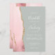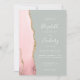 Le bord gauche de cette élégante faire-part de mariage moderne est orné d'une bordure en aquarelle rose vif et recouverte d'une parties scintillant en faux or. Le texte personnalisable combine écriture manuscrite, copperplate et polices italiques en blanc sur un arrière - plan vert sauge pâle. L'envers est assorti d'un design d'agate en blush et or.