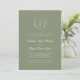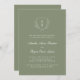 Sage Green Faire-part de mariage. Cette élégante invitation de mariage présente une crête blanche de feuilles avec le monogramme de la mariée et du marié sur un arrière - plan vert sage. Le texte est blanc et le fond de l'invitation est vert sage. Il fait partie de la collection Minimal Crest & Feuille.
