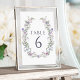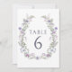 Numéros de table inutilement élégants pour mariages avec violet lavande minuscules fleurs sauvages et feuilles de verdure délicats.