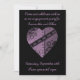 Un grand coeur violet avec des engrenages, rivets et tourbillons, sur un arrière - plan noir sur invitation 5x7". Ils sont rédigés pour une fête de fiançailles, mais ils peuvent facilement être changés pour une Saint-Valentin, ou un anniversaire.