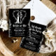 Ces invitations à des soirées bachelorette de Mariée ou de Mort Halloween et leur itinéraire se marient parfaitement éffrayant et chic. Dotés d'un design de squelette saisissant avec des roses et des branches gothiques, ils capturent l'esprit élégant et pointu d'une célébration à thème Halloween. Les couleurs classiques noir et blanc, avec des touches de rouge ou d'or, ajoutent du raffinement tout en gardant une ambiance festive et étrange. Les polices de style gothique et les détails complexes les rendent attrayants et mémorables. La carte de haute qualité assure à vos invités une sensation d'excitation pour une nuit remplie d'activités et de divertissement inoubliable.