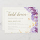 Des branches de fleurs lilas et d'hydrangea, ainsi que des papillons dorés (c'est un effet numérique, pas de l'or réel) décorent cet élégant classique rustique moderne, papillons boho et invitation à la douche nuptiale fleurie. Luxueux mais simple, classique mais chic, moderne mais intemporel.