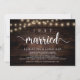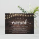 Mariés, Faire-part de mariage / Carte d'invitation, dans un style rustique en bois de ferme, avec des guirlandes lumineuses. C'est parfait pour votre réception de mariage et votre fête de célébration post-mariage. Ajoutez vos détails dans la même police / lettrage.