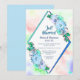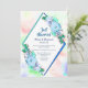 Une invitation de réception de mariage géométrique diamant floral aquarelle bleue élégante.
