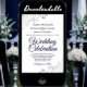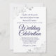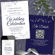 Cette belle faire-part de mariage est élégante, simple et élégante. Il présente un script bleu marine en lettres sur un arrière - plan blanc avec une fausse feuille d'argent dans chaque coin. Le design sobre est compensé par les ornements et les tourbillons ornés de l'oeuvre d'art. Le dos a un code QR personnalisable et note de détails afin que vous puissiez diriger vos invités vers un site Web pour des informations et RSVP.
