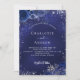 Un arrière - plan bleu marine, décoré de parties scintillant faux argentées, brille et florale bleue. La couleur bleue est inégale. Personnalisez et ajoutez vos noms et détails. Retour : Ajoutez l'url de votre site mariage pour les détails du mariage et RSVP.