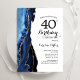 Bleu marine, blanc et or agate 40e anniversaire invitation de fête. Elégant design moderne avec aquarelle bleu royal agate marbre arrière - plan, fausse parties scintillant or et typographie script police. Carte invitation branchée parfaite pour une célébration anniversaire féminine élégante. Invitations Zazzle imprimées ou téléchargement instantané modèle imprimable numérique.