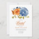 Marine bleu et Burnt Orange Terracotta Floral douche nuptiale Invitation