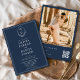 Invitation Marine Blue Crest QR Code Photo Mariage élégant