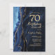 Invitation de 70e anniversaire en bleu marine et or agate. Elégant design moderne avec aquarelle bleu royal agate marbre arrière - plan, fausse parties scintillant or et typographie script police. Carte invitation branchée parfaite pour une célébration anniversaire féminine élégante. Invitations Zazzle imprimées ou téléchargement instantané modèle imprimable numérique.