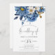 Invitation Marine Blue Gold Florals QR Code Mariage