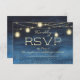 Bleu marine rustique et élégant avec or scintillant et lumières à cordes et lanternes carte RSVP mariage. Le texte, les polices et le libellé sont tous personnalisables. Contactez-nous pour obtenir de l'aide sur la personnalisation ou la mise en correspondance de produits.