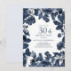 Feuilles bleu marine/indigo et floral sur invitation de fête blanche 30e anniversaire. Contactez-nous pour obtenir de l'aide sur la personnalisation ou la mise en correspondance de produits.