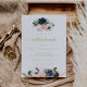 Ce brunch mariage bleu marine à fleurs d'or est parfait pour un événement rustique. Le design se compose de belles peintes à la main bleu foncé, bleu, bleu marine, rose, rousse, fleurs dorées et feuillage vert.