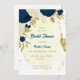 Romantique bleu marine et fleurs blanches avec or feuille botanique de la nuptiale invitation Les détails de la parties scintillant sont simulés. Il convient aussi bien aux invitations de douche nuptiale qu'aux de baby showers.