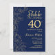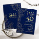 Invitation de 40e anniversaire de la Marine Gold Surprise. Le minimaliste design féminin moderne présente des accents botaniques et des caractères typographiques. Carte invitation florale simple parfaite pour une célébration anniversaire surprise femme élégante.