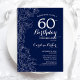 Navy White Floral 60th Birthday Party Invitation. Design moderne minimaliste avec accents de dessin botanique et police de script de typographie. Carte invitation simple et tendance, parfaite pour une célébration anniversaire élégante. Peut être customisé à n'importe quel âge. Invitations Zazzle imprimées ou téléchargement instantané modèle imprimable numérique.