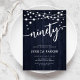 Invitation de fête du 90e anniversaire. Design rustique avec motif en bois blanc marine. Carte invitation classique avec lumières à cordes de fées et police de caractères en script blanc. Parfait pour une célébration anniversaire du quatre-vingt-dixième siècle. Personnalisez avec vos propres détails. Peut être customisé pour n'importe quel âge ! Invitations Zazzle imprimées ou téléchargement instantané modèle imprimable numérique.
