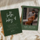 Cette invitation de baby shower moderne présente une police manuscrite audacieuse avec une combinaison de couleurs vert de forêt et blanc. Son design simple est l'invitation parfaite pour la future maman moderne. Ajoutez facilement votre propre photo au verso pour un touche personnelle unique.